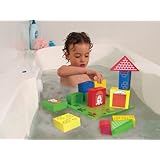With these unique soft blocks your child will have fun build his house of dreams in the bath! The board and blocks float on the water. Ages 18 mos. and up.