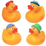 (More customer reviews)Whimsical little guys... the best part is that they actually float upright in the the bathtub.It sounds silly, but most ducks if you get them will end up floating on their sides or upside down.These guys are weighted properly so they don't look like a dead duck in water. :-p