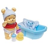 Aspiring mommies will love to care for this adorable rotomolded plastic Pooh doll with poseable arms and legs. Baby Pooh comes with a feeding chair and bottle for feeding time. When it is time for Baby Pooh's bath, remove Pooh's little red T-shirt, diaper and hat and place him in tub -- the feeding chair conveniently converts into a baby bath. There's even a cute rubber duckie for Pooh to play with in the bath. Once bathtime is over, Baby Pooh can then be dried off and wrapped up in his soft terry cloth towel. All the accessories can be easily sorted and stored inside a separate compartment located inside the chair/tub.